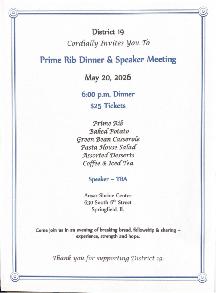 Come join us for an evening of breaking bread, fellowship, sharing and experiencing experience, strength and hope