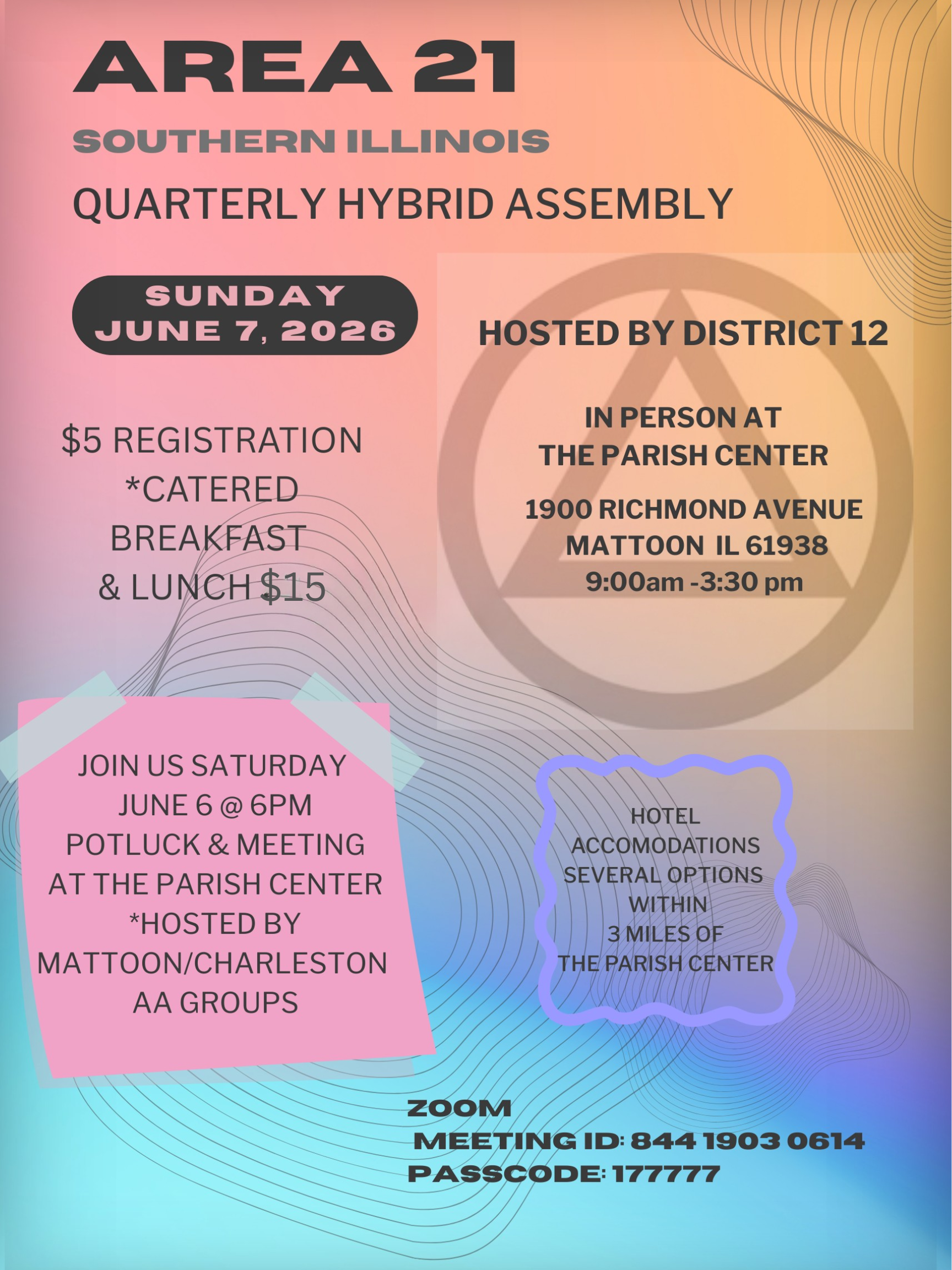 Download interactive flyer Discuss proposed agenda items for the 2026 General Service Conference, prepare our Delegate Jodi B. for the…